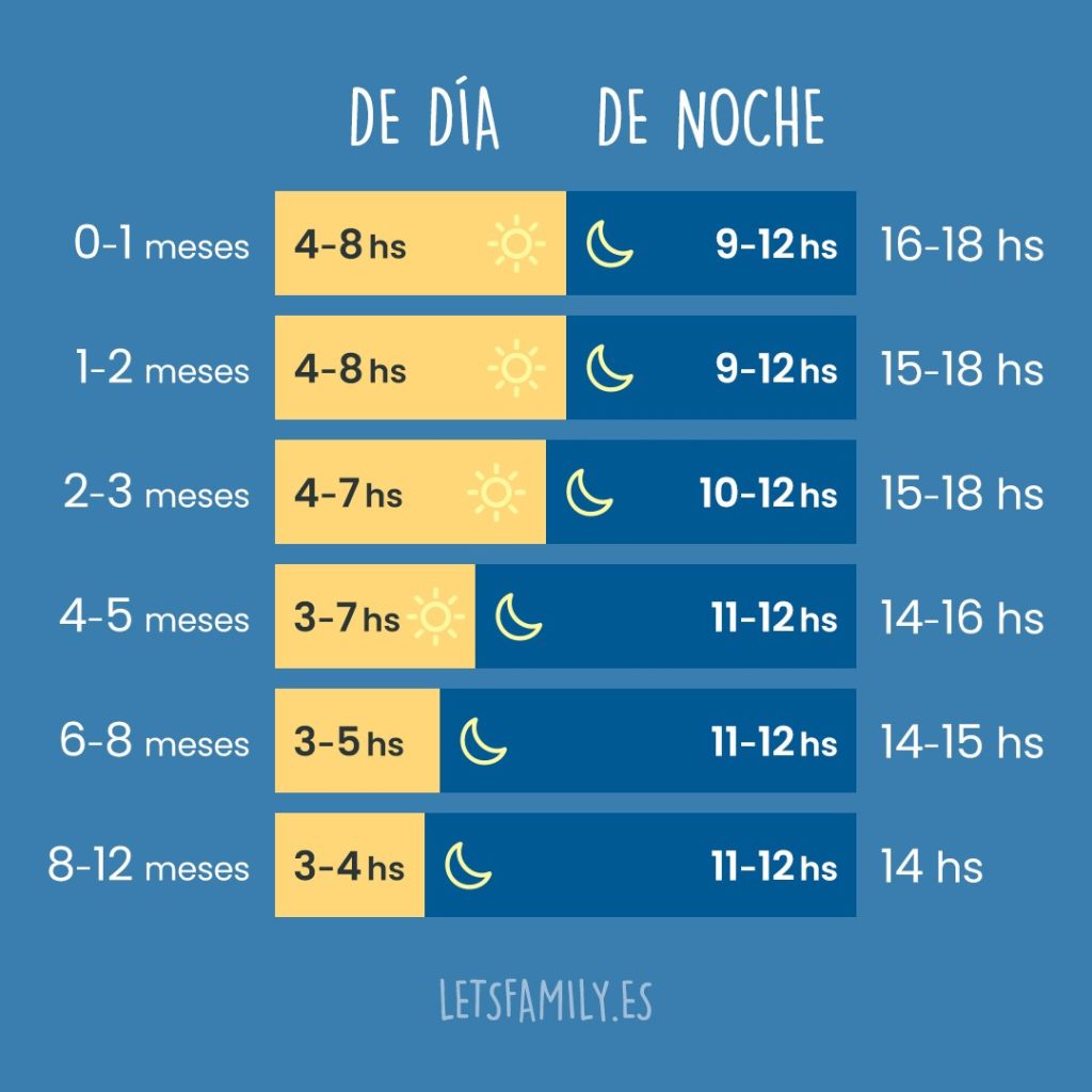 Horas aproximadas de sueño de un bebé tanto durante el día como durante la noche en su primer año de vida