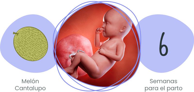 En esta semana, los pulmones del bebé todavía no están maduros. Eso significa que, a partir de la semana 35, empezarán a secretar una sustancia llamada surfactante pulmonar —rica en proteínas y grasas que producen los alvéolos pulmonares— que le permitirá el buen funcionamiento respiratorio en la vida extrauterina.